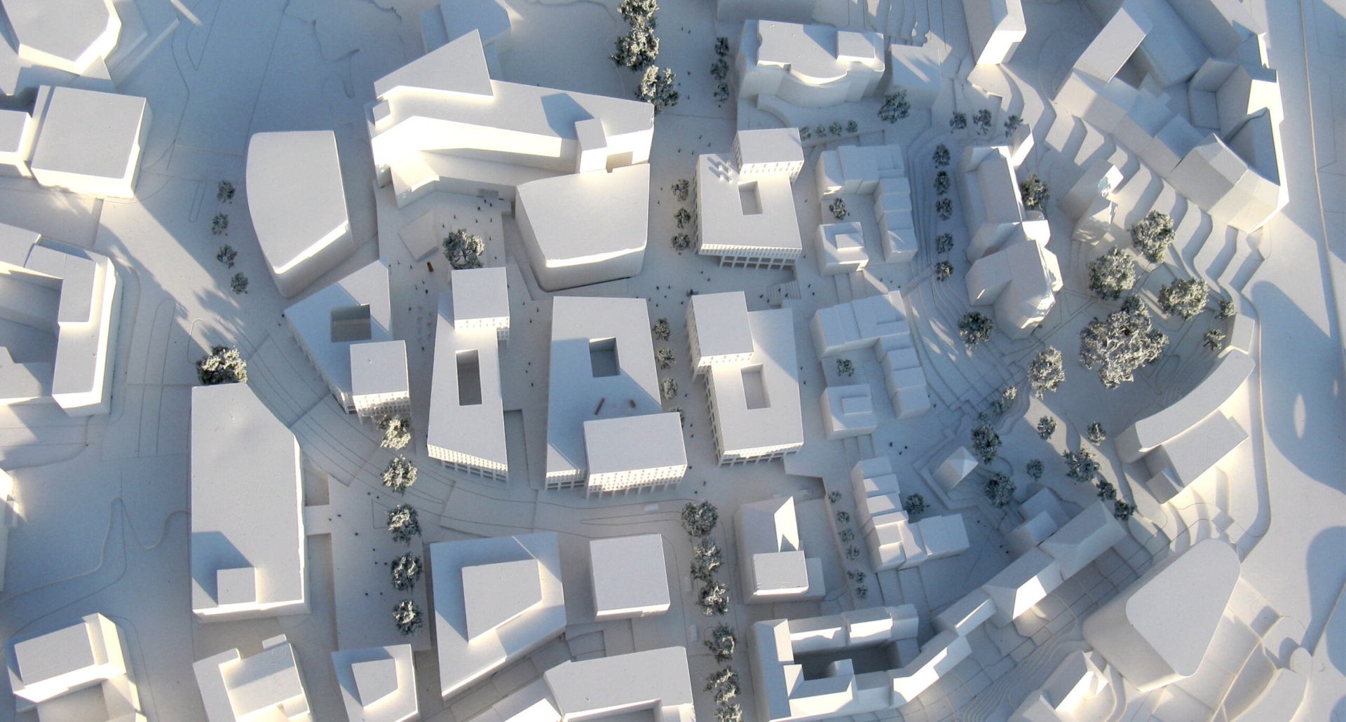 Die Unterschiede der Stadtgrundrisse von 1941 und heute in Bezug auf den öffentlichen Raum könnten nicht größer sein. Ursprünglich zeigte das Stadtzentrum ein eng vernetztes Gewebe von öffentlichen Straßen- und Platzräumen. Die Philosophie der 50-er Jahre hingegen produzierte im Zuge des Wiederaufbaus eine »Stadt der offenen Mitte« mit einer Ansammlung von teilweise qualitätsvollen Einzelbauwerken, zwischen denen jedoch kein spürbar gestalteter Außenraum, sondern allenfalls ein Zwischenraum ablesbar bleibt. Mangelnde Dichte und spannungslose öffentliche Räume lassen im ehemaligen historischen Kern der Stadt kein urbanes Lebensgefühl entstehen.