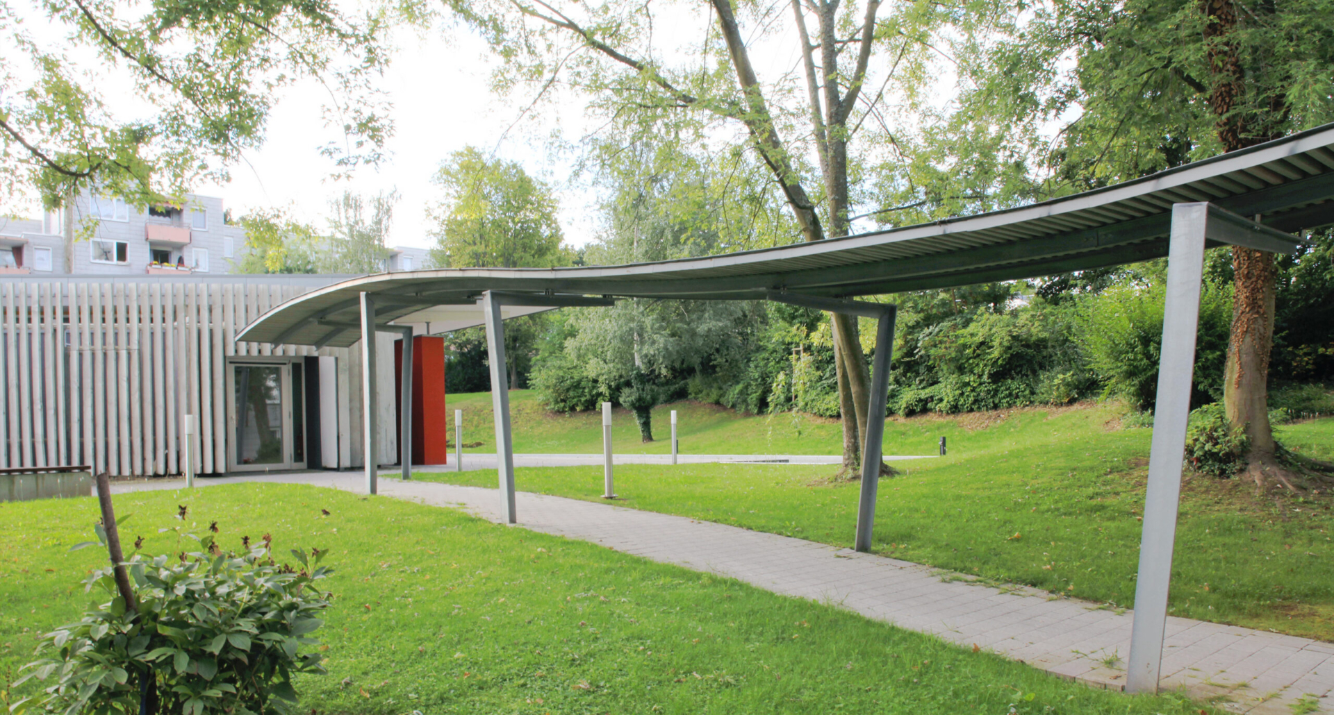 Durch das Entfernen von Gestrüpp und der Schaffung einer neuen Baumallee wird die Adresse der Begegnungsstätte an Carl-Schurz-Straße und Steinackerweg sichtbar gemacht und ihr Standort neu definiert.
