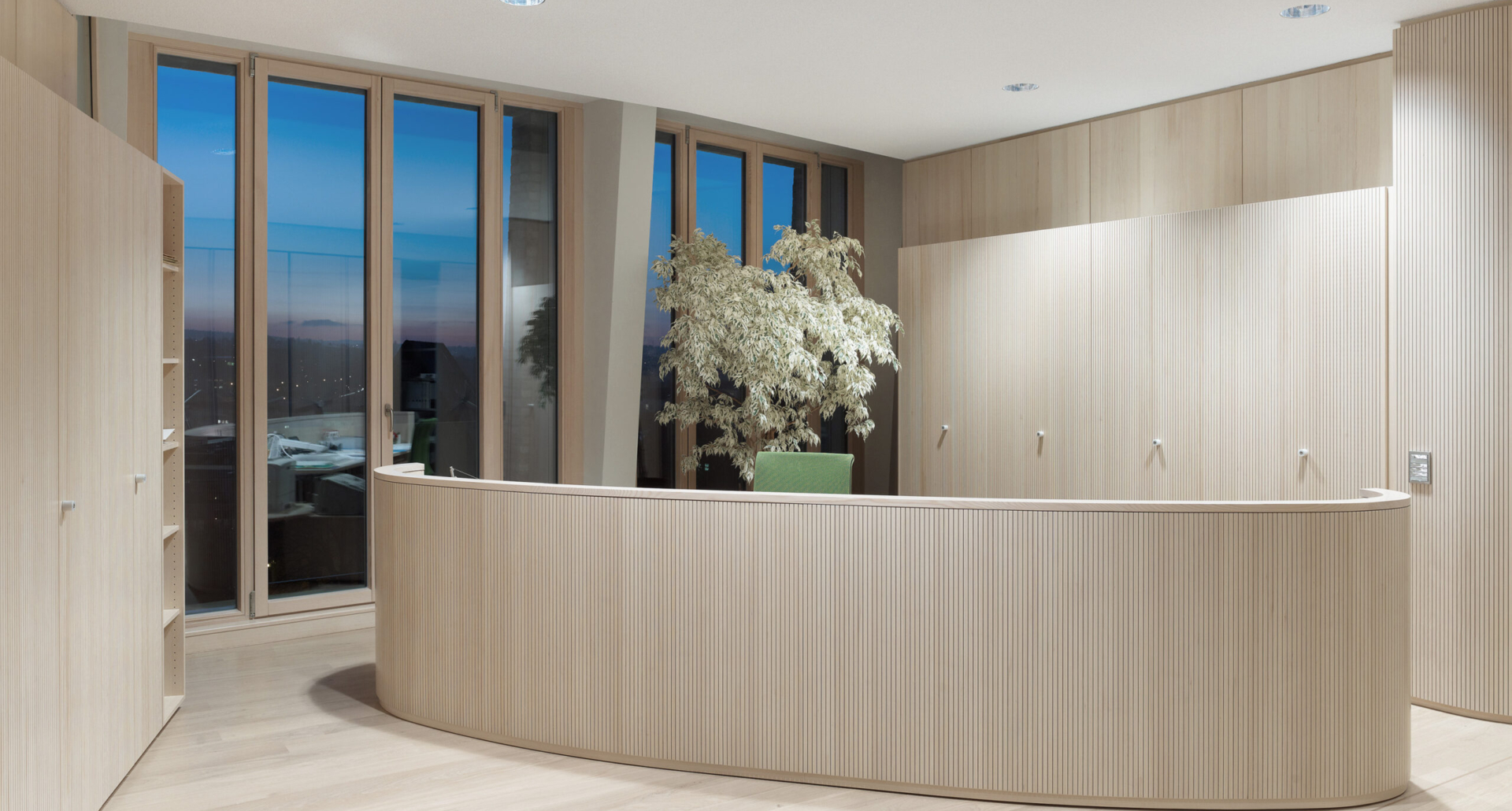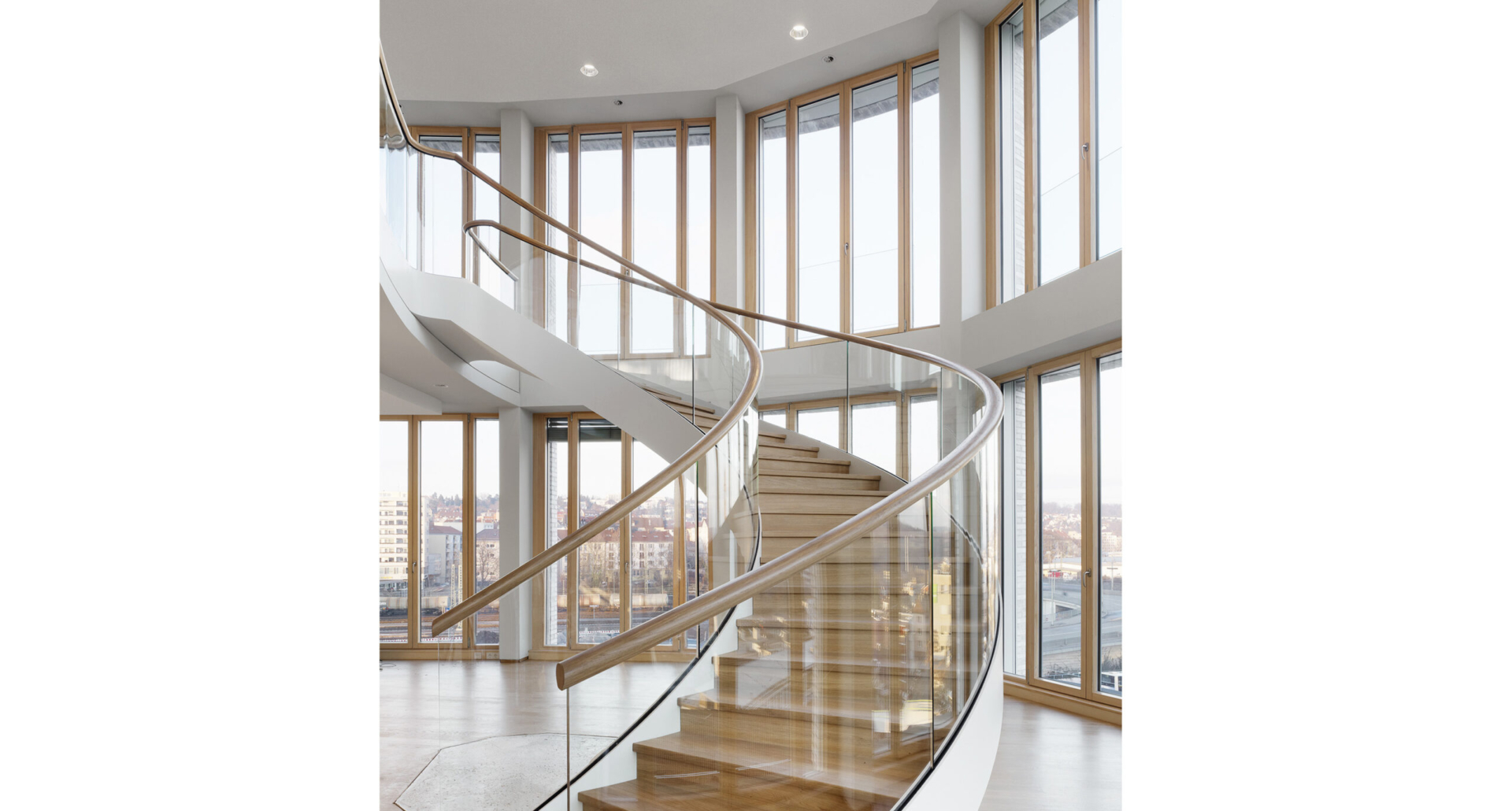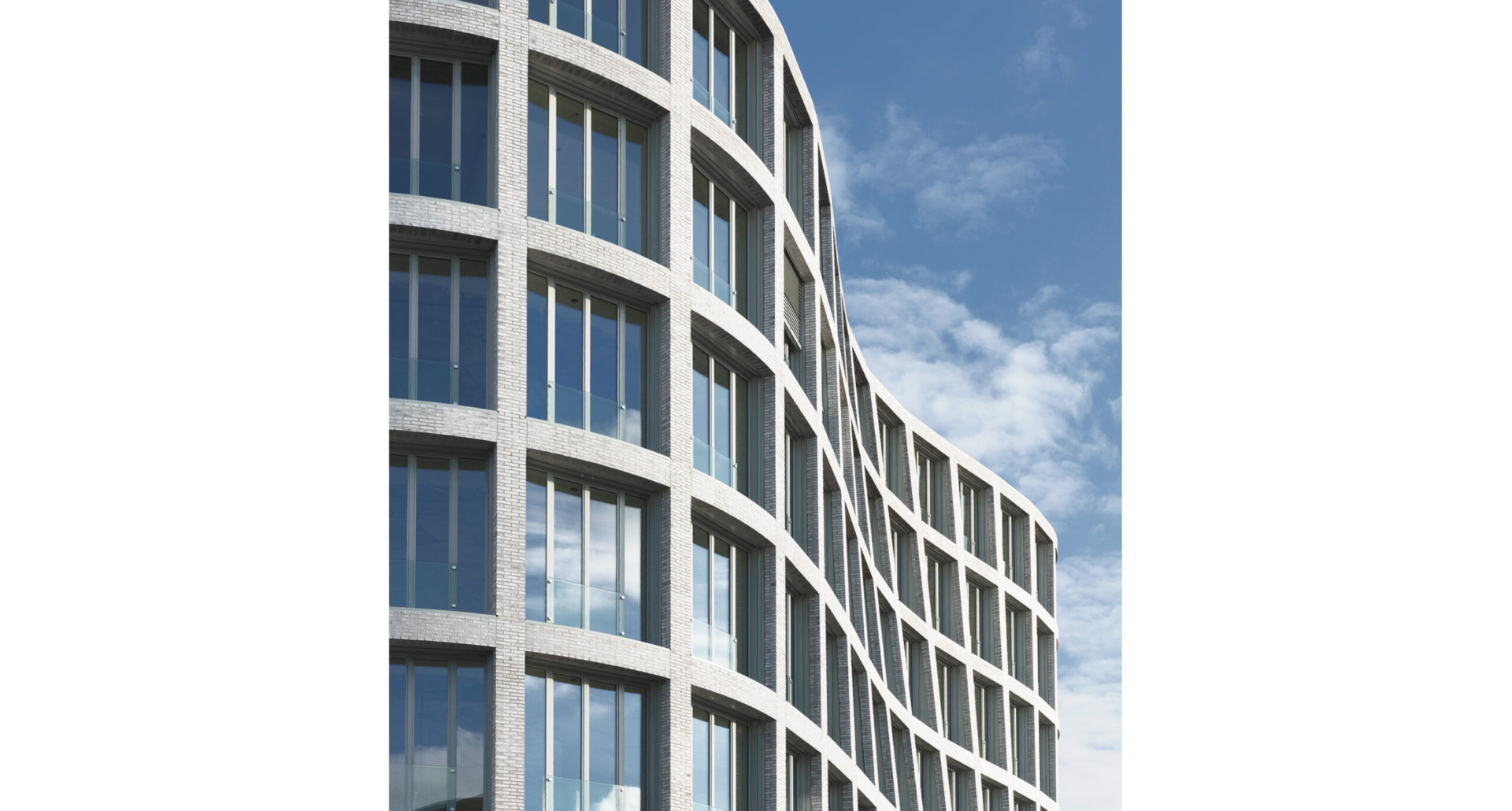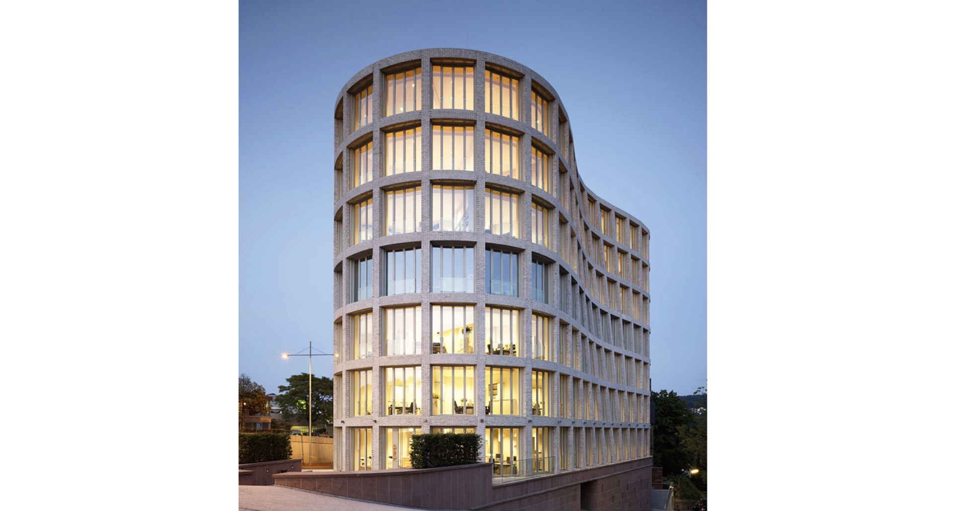 Die nach oben sich leicht konvex wölbenden Fassaden geben dem Bauwerk eine unverwechselbare Silhouette und schaffen an dieser städtebaulich prägnanten Stelle einen hohen Grad von Identifikation.
