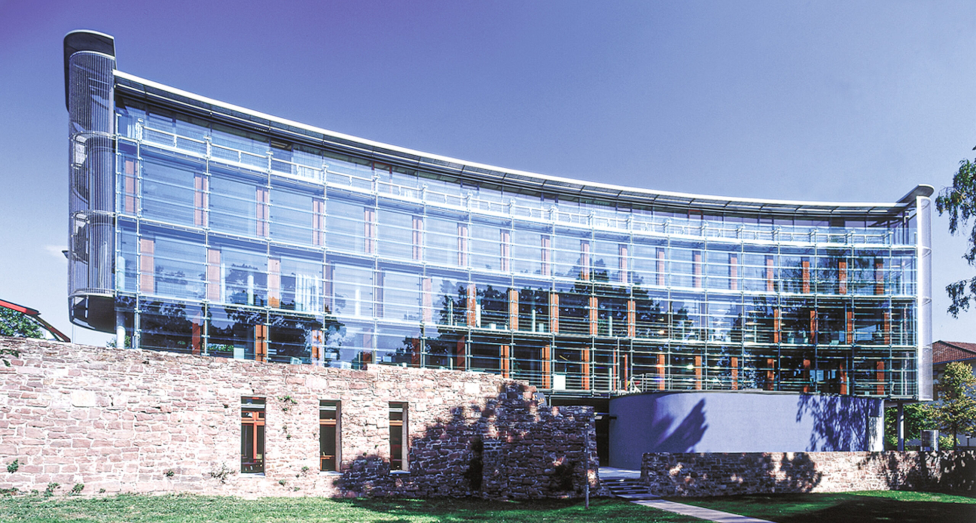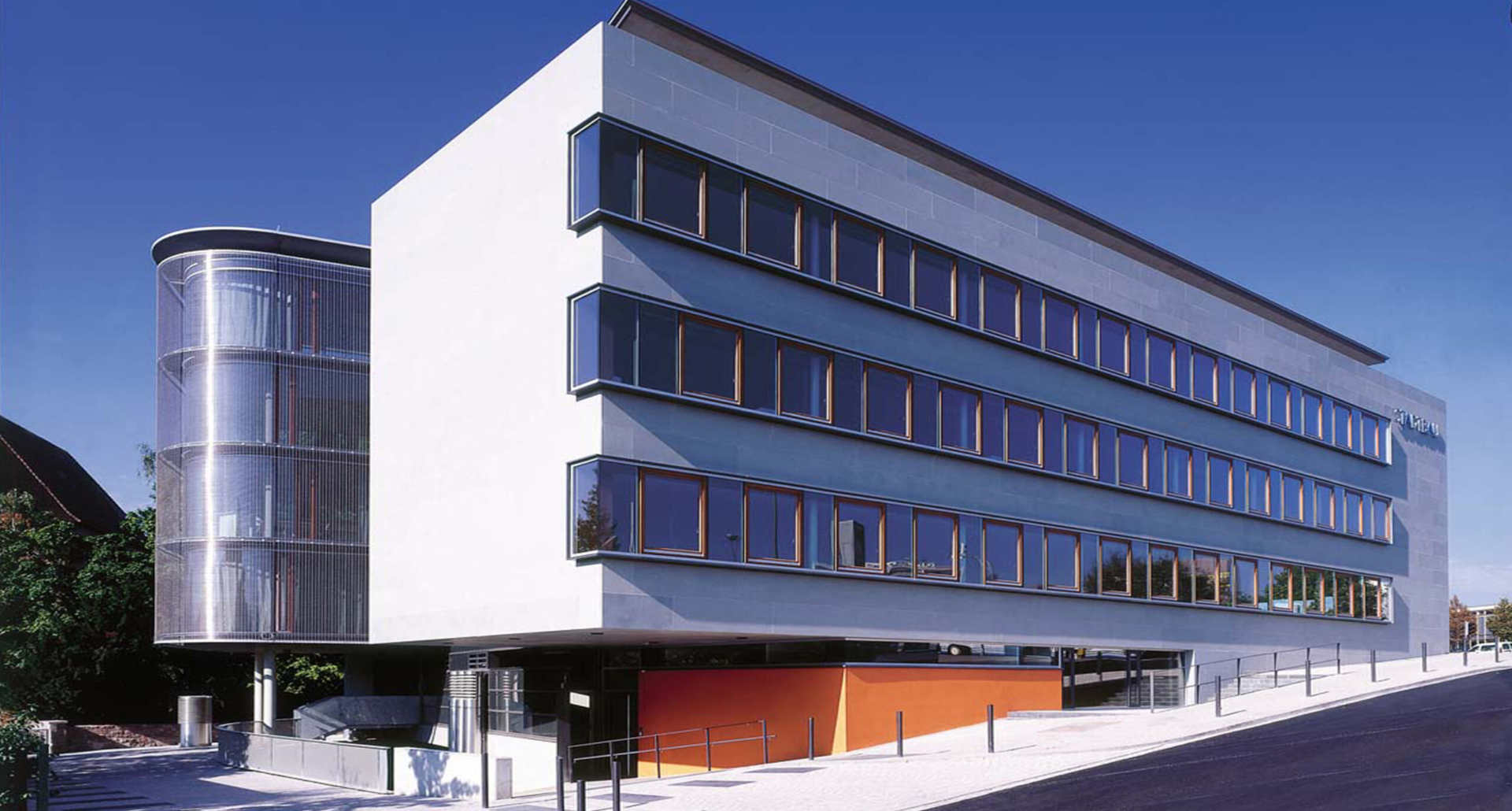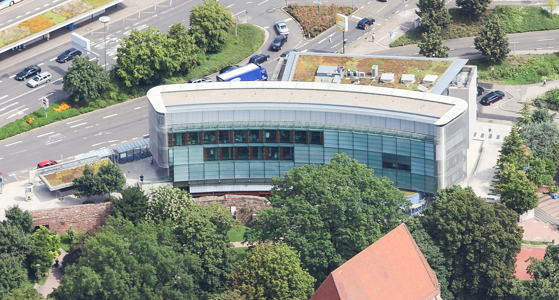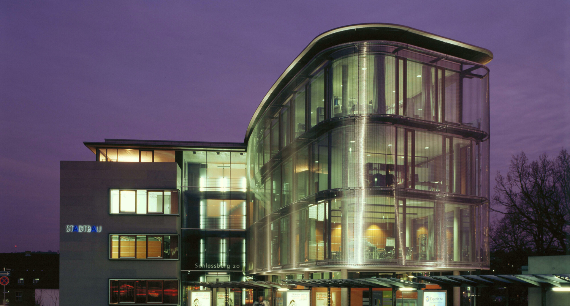 Das STADTBAU-Gebäude bildet den räumlichen Abschluss des Schlossparkes  zum Hauptbahnhof. Die gegensätzlichen Situationen mit ruhiger Parkatmosphäre im Süden sowie Verkehrslärm im Norden werden in Form und Konstruktion zum Grün mit einem geschwungenen transparenten Körper und straßenseitig mit einem geraden steinernen Riegel beantwortet. Die leichte Glashaut nimmt den Dialog mit den Objekten des Parks auf, den Bäumen und der historischen Schlosskirche, die sich in ihr spiegeln und sich wechselseitig in ihrer Wirkung steigern. Die Entwicklung dieser Haut führte neben energetischen Aspekten gleichzeitig zu einer besonderen Ästhetik, die dem Gebäude eine ganz eigene Ausstrahlung gibt.